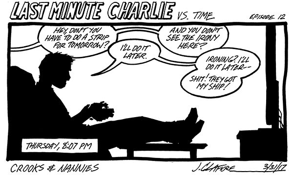 Available now! The first CROOKS & NANNIES book, collecting all the strips for 2011-2012 (with a few exclusive extras). If you'd like a copy