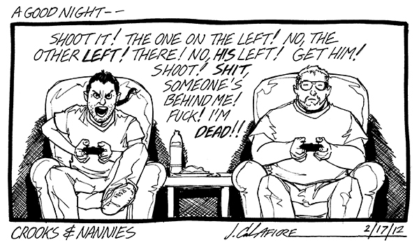 Available now! The first CROOKS & NANNIES book, collecting all the strips for 2011-2012 (with a few exclusive extras). If you'd like a copy