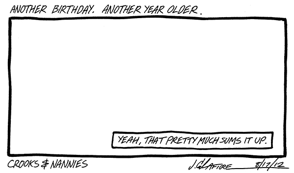 Available now! The first CROOKS & NANNIES book, collecting all the strips for 2011-2012 (with a few exclusive extras). If you'd like a copy