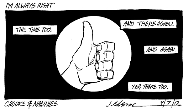 Available now! The first CROOKS & NANNIES book, collecting all the strips for 2011-2012 (with a few exclusive extras). If you'd like a copy