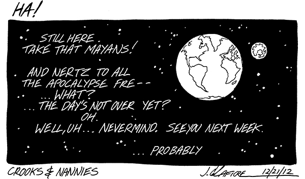 Available now! The first CROOKS & NANNIES book, collecting all the strips for 2011-2012 (with a few exclusive extras). If you'd like a copy