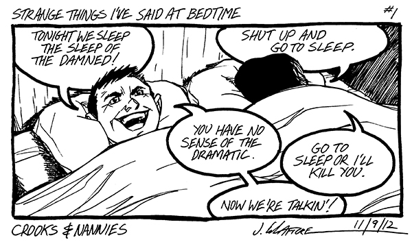 Available now! The first CROOKS & NANNIES book, collecting all the strips for 2011-2012 (with a few exclusive extras). If you'd like a copy