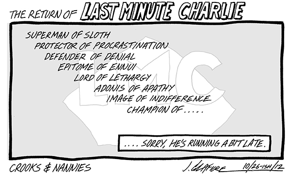 Available now! The first CROOKS & NANNIES book, collecting all the strips for 2011-2012 (with a few exclusive extras). If you'd like a copy