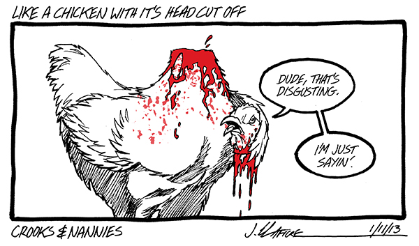 Available now! The first CROOKS & NANNIES book, collecting all the strips for 2011-2012 (with a few exclusive extras). If you'd like a copy