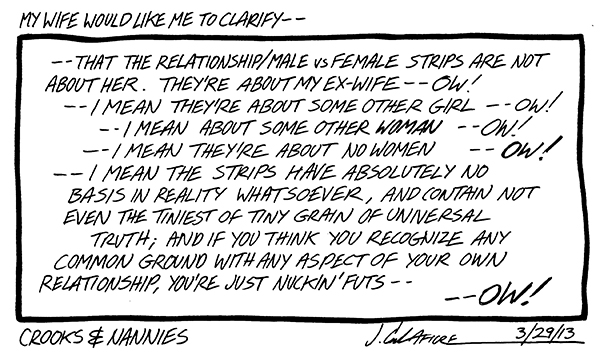 Available now! The first CROOKS & NANNIES book, collecting all the strips for 2011-2012 (with a few exclusive extras). If you'd like a copy