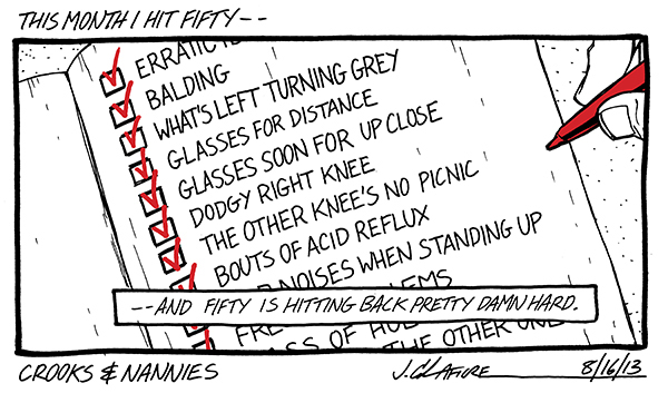 Available now! The first CROOKS & NANNIES book, collecting all the strips for 2011-2012 (with a few exclusive extras). If you'd like a copy