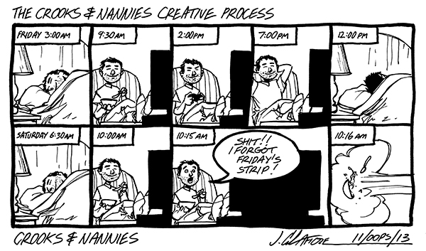 Available now! The first CROOKS & NANNIES book, collecting all the strips for 2011-2012 (with a few exclusive extras). If you'd like a copy